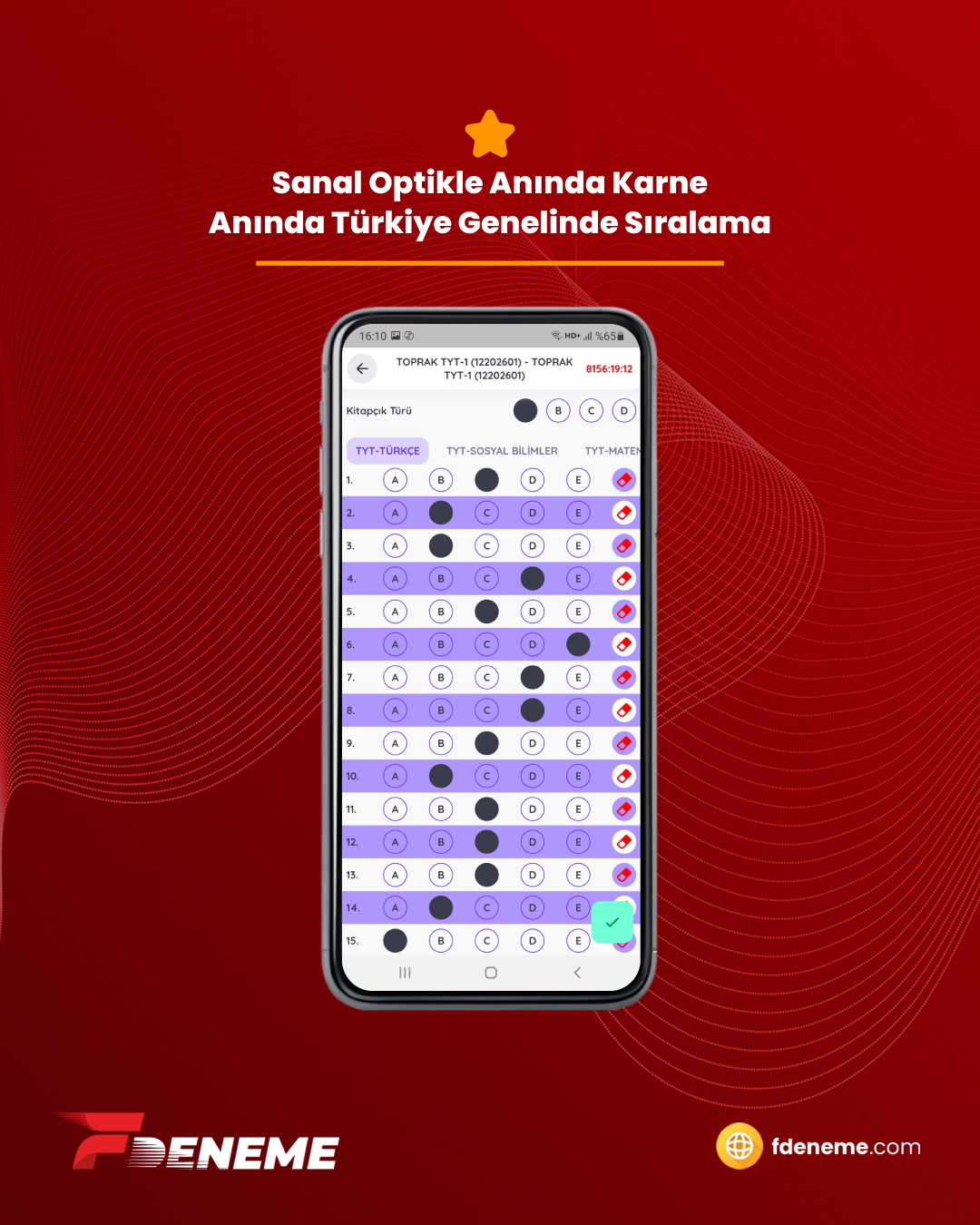 Her hafta en az iki farklı yayın evinin deneme sınavını gerçek oturumlu olarak F Deneme Uygulama Merkezlerinde yapıyoruz.